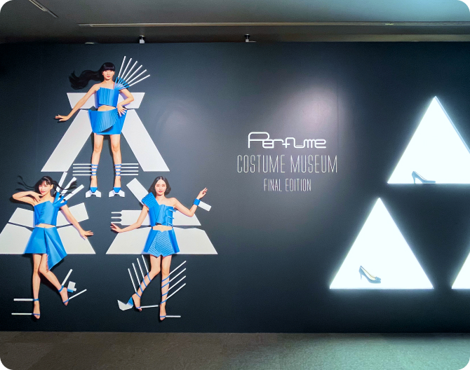 Perfume COSTUME MUSEUM は、Perfumeのこれまでの活動を「衣装」を通して振り返る展覧会です。ライブやMVで実際に着用された衣装が年代順に展示され、音楽とファッション、テクノロジーが融合したPerfumeならではの世界観を間近で楽しめます。ステージの裏側や衣装に込められた工夫も感じられる、ファン必見の内容です。