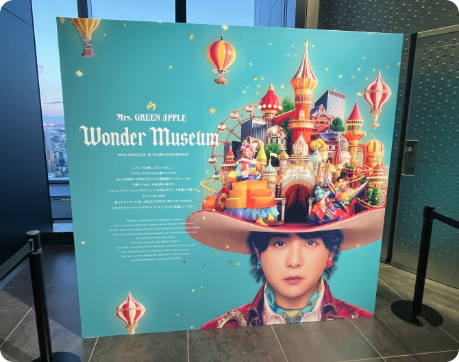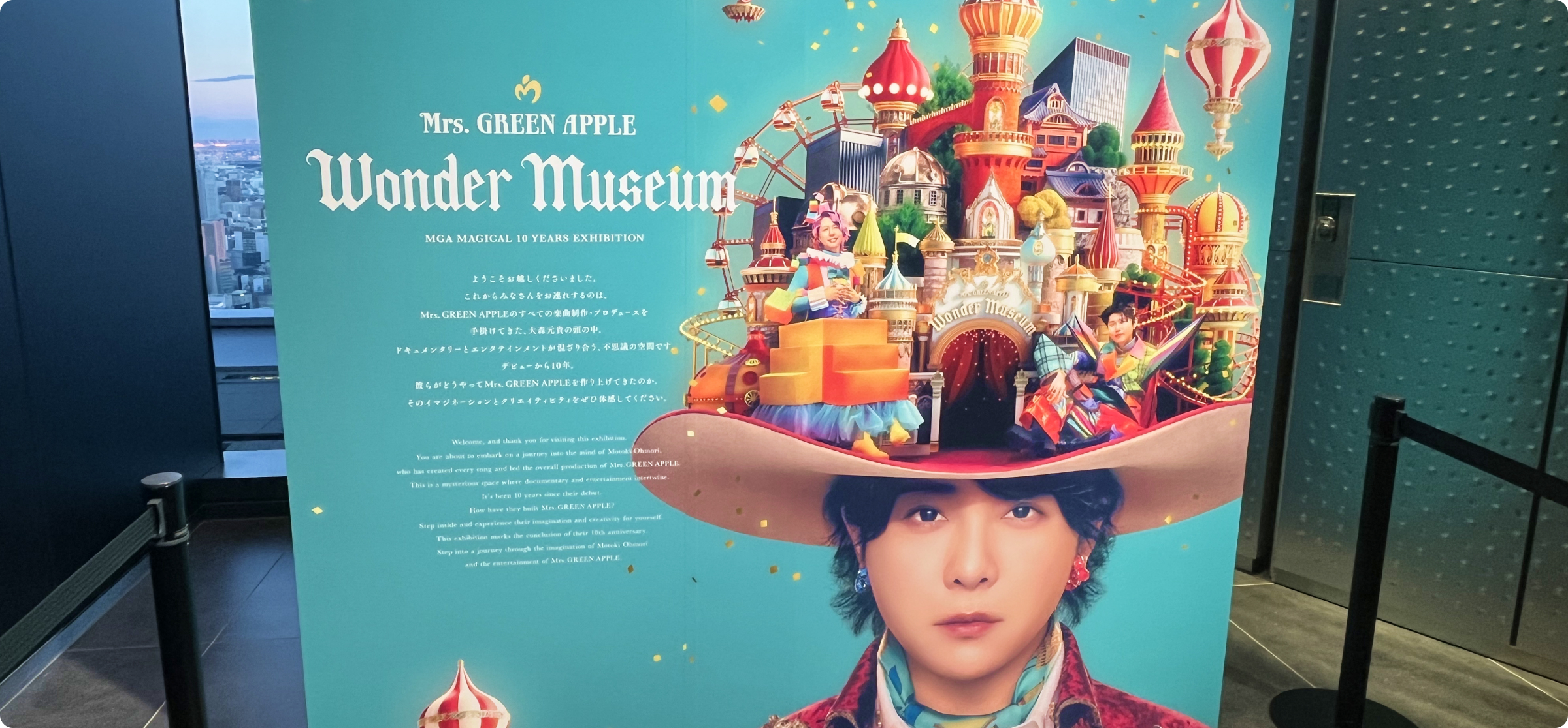 ディズニーの世界に迷い込んだかのような空間で、まさに“ミュージアム”という言葉がぴったりでした。展示を見ていると、大森さんの頭の中では本当にたくさんのアイデアや感情が巡っているんだろうなと感じて、改めてその表現力のすごさに圧倒されました。ミセスの音楽は聴くだけでテンションが上がるし、自然と体がノってしまう楽曲ばかりで、終始とても楽しい気分で過ごせました。音楽と世界観の両方をたっぷり味わえる、素敵な体験でした。
