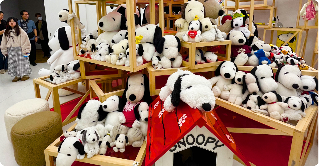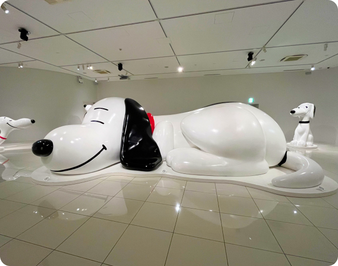 入り口や壁面から可愛いスヌーピーのモニュメントが広がっていて、入った瞬間からワクワクする空間でした。館内にはスヌーピーのぬいぐるみタワーやヴィンテージグッズ、貴重な原画などが展示されていて、見どころがたくさんありました。「こんなキャラクターもいたんだ」と新しい発見も多く、スヌーピーの世界観や登場キャラクターについてより深く知れました。中でも巨大なモニュメントは存在感があり、とても可愛くて思わず見入ってしまいました。
