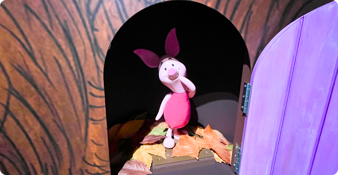 プーさんの原画が本当に可愛すぎて、思わず「家に飾りたい…!」と思ってしまうほどでした。会場で流れていた音楽も、まさに“THE ディズニー”という雰囲気で、聴いているだけでワクワクした気持ちに。作品の世界観とぴったり合っていて、自然とその空間に引き込まれていきました。もしあんな世界が本当にあったら、子どもにとってはきっと毎日が冒険で、すごく楽しいんだろうな…と、つい現実を忘れて想像してしまいます。ふと、プーさんのハニーハントに乗りたくなってしまいました(笑)
