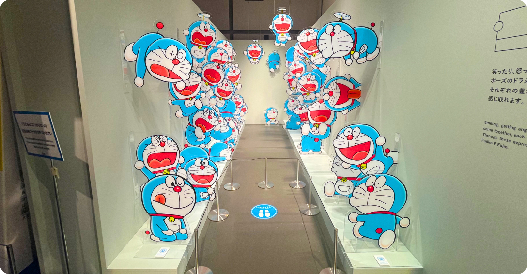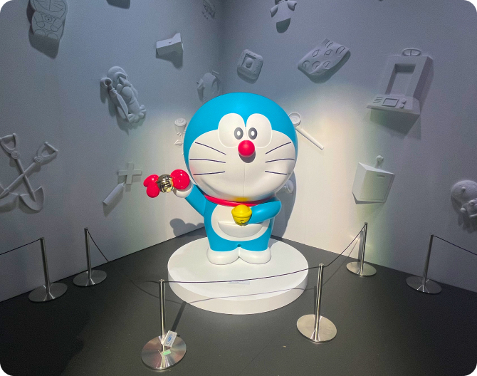 会場にはたくさんのドラえもんが展示されていて、可愛いものからかっこいいものまで幅広く、とても見応えがありました。どの展示も魅力的で、終始ワクワクしながら楽しむことができました。平日に訪れたにもかかわらず多くの人で賑わっていて、改めてドラえもんが長年愛され続けているキャラクターなんだと実感しました。また、アニメーションのクオリティも非常に高く、細部までしっかり作り込まれていてすごかったです。これまでにこんなに多くの映画が公開されていたのかと改めて感じるとともに、小さい頃によく観ていた記憶がよみがえり、懐かしい気持ちになりました。