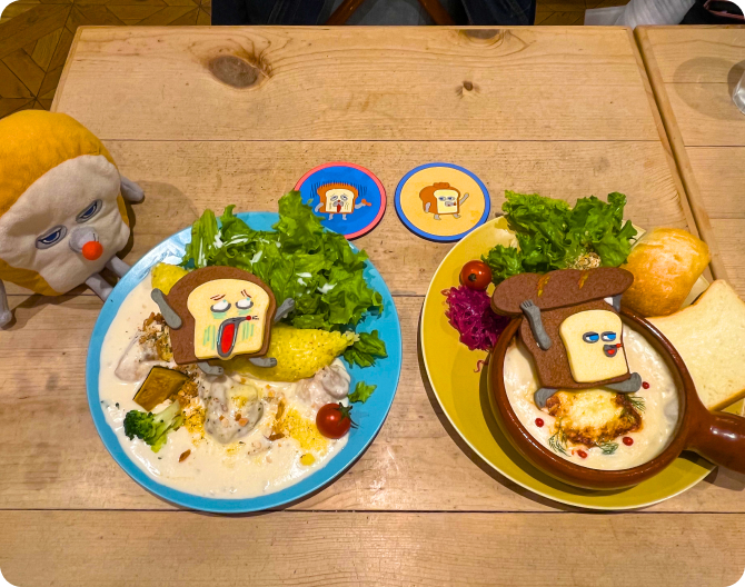 店内にはパンどろぼうの本が置かれていて、初めてちゃんと読んでみたのですが、とにかく可愛くて癒されました。食べ物をテーマにしているのに、主人公がネズミというチョイスもユニークで、クスッとします。カフェで出てきた料理もとにかく可愛くて、見た瞬間にテンションが上がりました。食べるのがもったいないと思ってしまうほどのビジュアルでしたが、味もしっかり美味しくて大満足。見た目も味も楽しめる、素敵な時間になりました。