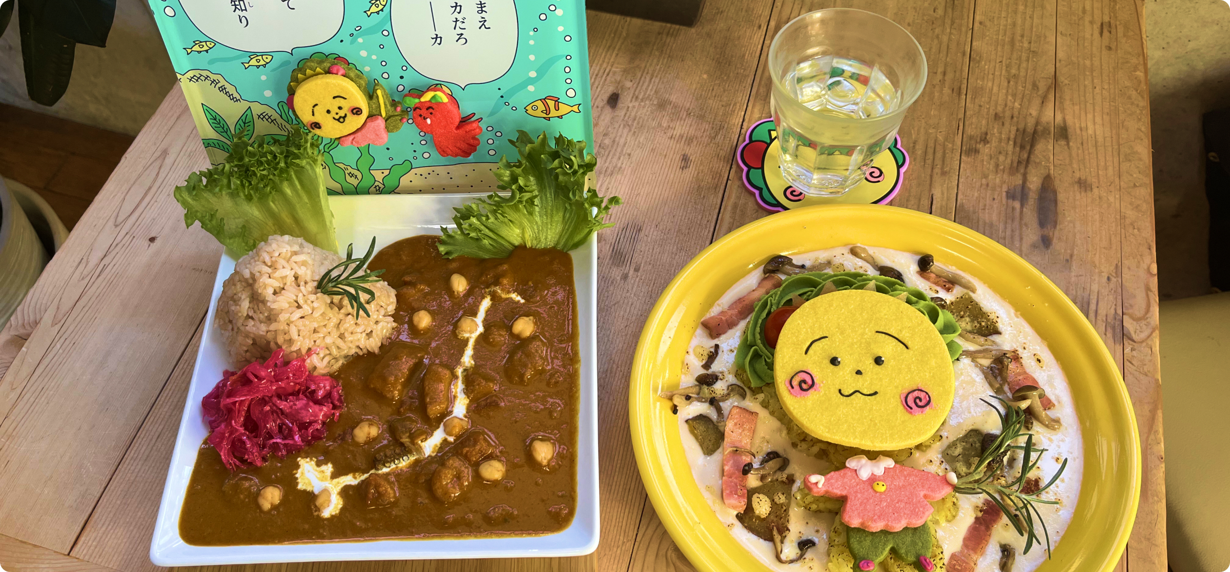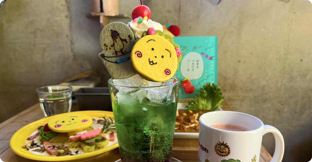 料理が本当に可愛らしくて、コジコジのモチーフがいろいろなところに使われていました。特にクッキーの絵柄がとても好みで、見た瞬間に思わず写真を撮りたくなってしまいました。見た目だけでなく、味もしっかり美味しくて大満足です。さらに、テーブルにはコジコジのグッズが飾られていて、座っているだけで世界観に浸れるのが嬉しかったです。