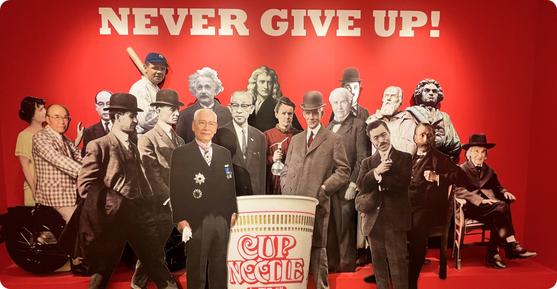 百福さんの偉大さを改めて実感しました。90代になってもなお新しいものを生み出そうと開発を続けていたと知り、本当に「すごい」という言葉しか出てきません。この世にまだないものを形にし、人の生活を変えてしまうような発明をする人は、やはり偉大だなと感じました。カップヌードルファクトリーも想像以上に人が多く、とても賑わっていて、その人気ぶりからも多くの人に愛され続けている体験なんだなと伝わってきました。